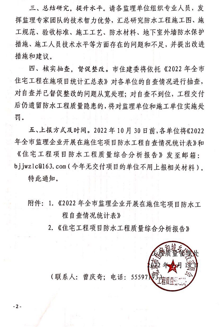 转自:北京市建设监理协会链接:关于组织监理单位开展在施住宅项目防水工程质量自查工作的通知-北京市建设监理协会(bcpma.org.cn)